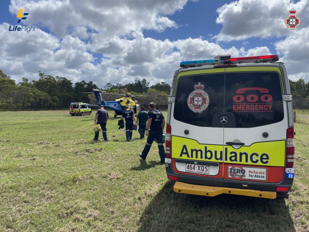 The Bundaberg-based LifeFlight chopper was called to the incident on Monday at 8.55am, landing at a private property near the scene.