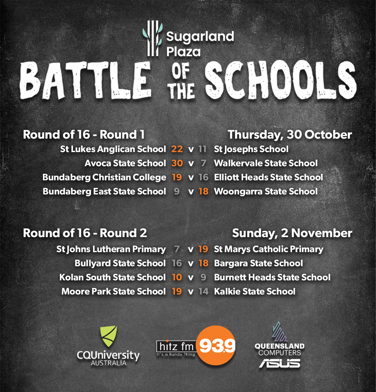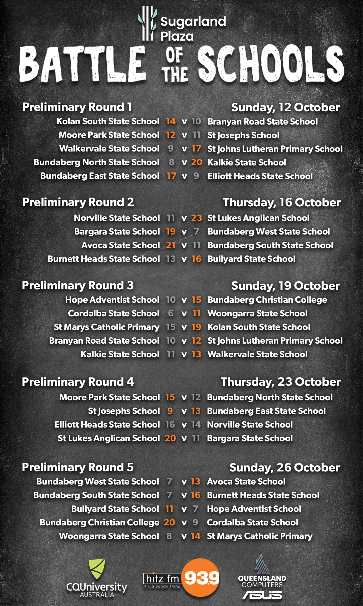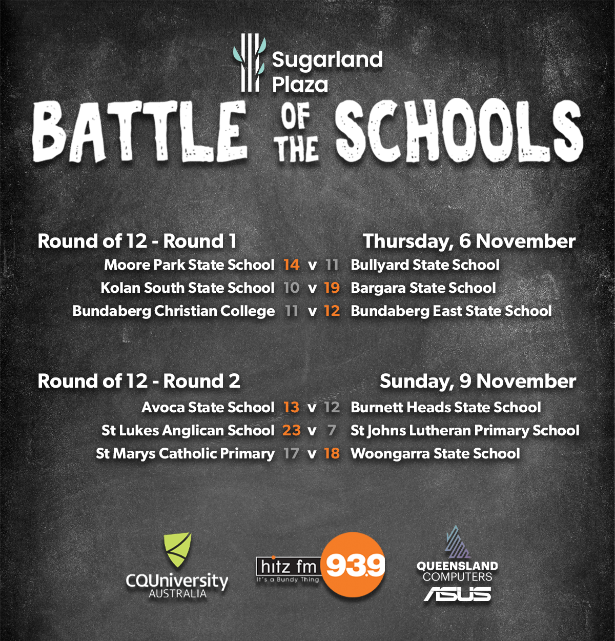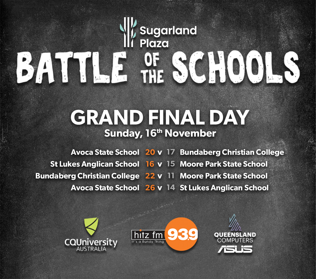 We started five weeks ago with 23 schools, and worked our way down to a final 4 who played off on Grand Final Day, where we eventually crowned last years runners up, Avoca State School as the 2025 Sugarland Plaza Battle of the Schools Champions!